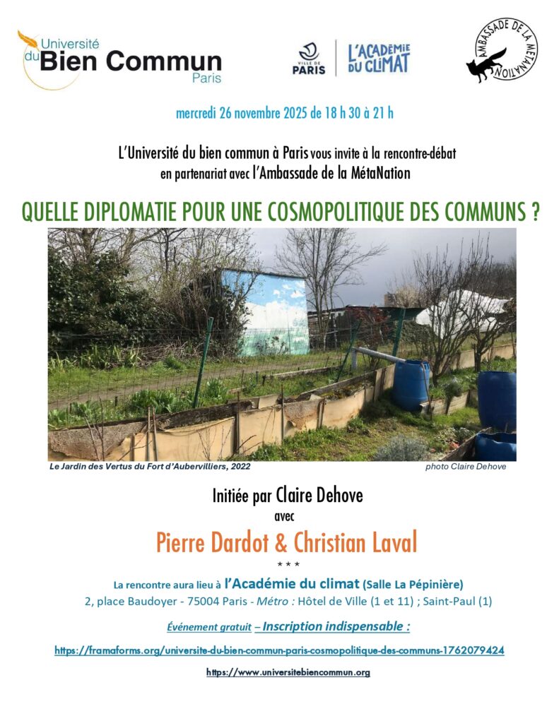 Initiée en 2017 par Riccardo Petrella, Frédéric de Beauvoir et Cristina Bertelli – avec Yovan Gilles et la revue Les périphériques vous parlent -, rejoints par les membres fondateurs, l’Université du bien commun à Paris est dirigée par un comité de pilotage qui oriente et organise les activités.